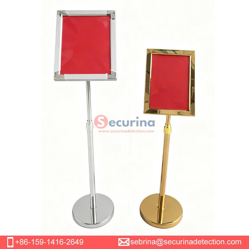The Floor-Standing Adjustable Poster Sign Holder is a sleek, professional display solution designed to showcase menus, advertisements, event schedules, or directional signage. With a durable freestanding base and an adjustable pole, this sign stand provides maximum visibility and flexibility for retail shops, restaurants, hotels, trade shows, and office lobbies.