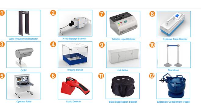 about x-ray security scanner equipment, walk through metal detectors, handheld