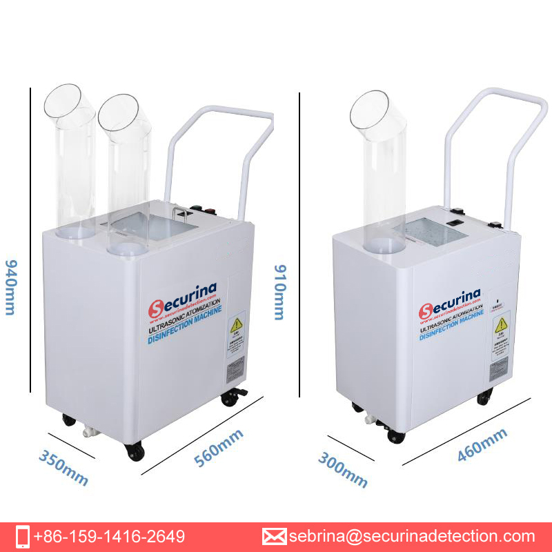 Respond to the prevention and control of epidemics and the spread of epidemic diseases(such as Covid-19 Coronavirus, Ebola, Common Influenza, Norovirus SARS and other flu variants such as Avian Flu, Bird and Swine flu etc.)Arranging disinfection equipment in public places to effectively disinfect and sterilize the air and environment can more effectively prevent the spread of the epidemic. Thus, Securina released the latest products, ultrasonic automization fog sprayer disinfection sanitizer equipment, suitable for medical institutions, entertainment public places, hotels, buildings, churches, schools, communities, hospitals, airport, customs, seaports, warehouses, production workshops and other places.